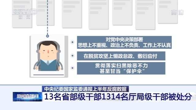 根据通报,上半年共处分24万人,其中包括13名省部级干部和1314名厅局级干部。