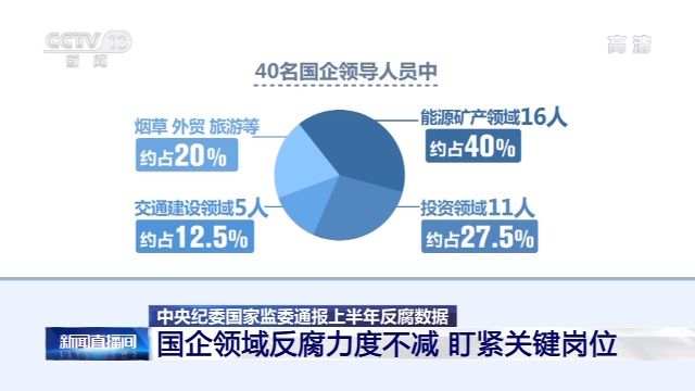 另外,今年以来,国有企业领域反腐败力度不减,上半年共有40名国企领导人员被中央纪委国家监委公开通报,其中28人接受审查调查,12人受到党纪政务处分。