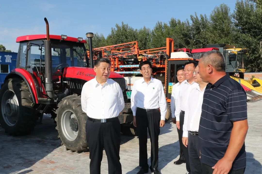 △2020年7月22日,习近平来到吉林省四平市梨树县国家百万亩绿色食品原料(玉米)标准化生产基地核心示范区、卢伟农机农民专业合作社考察。 新华社记者 鞠鹏 摄