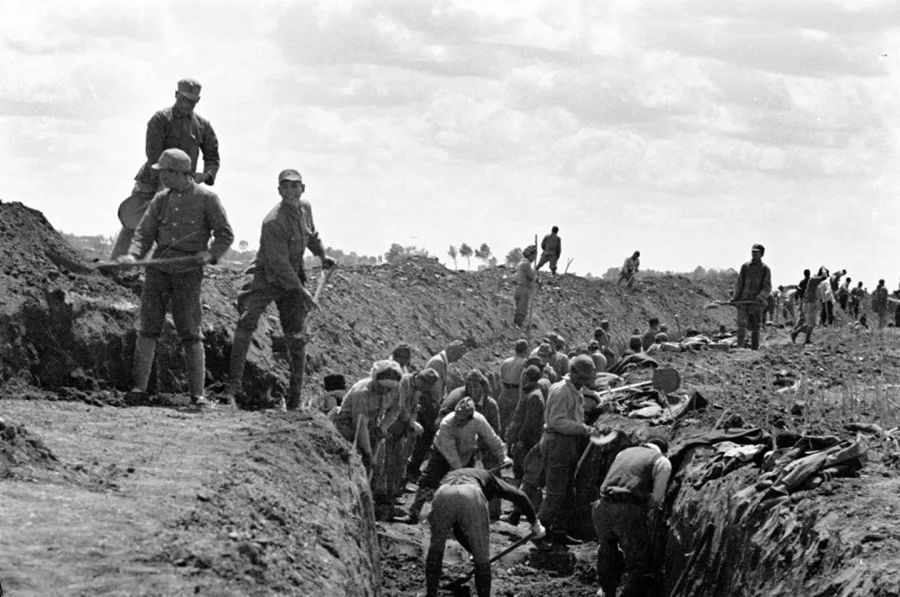 四平保卫战,战士在修工事(资料照片 新华社发)