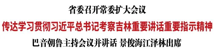 7月24日下午,省委召开常委扩大会议,专题传达学习习近平总书记在吉林考察调研时的重要讲话重要指示精神,研究部署贯彻落实工作。省委书记巴音朝鲁主持会议并讲话。省委副书记、省长景俊海,省政协主席江泽林出席会议。