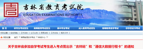 关于吉林省参加自学考试考生进入考点需出示“吉祥码”和“通信大数据行程卡”的通知