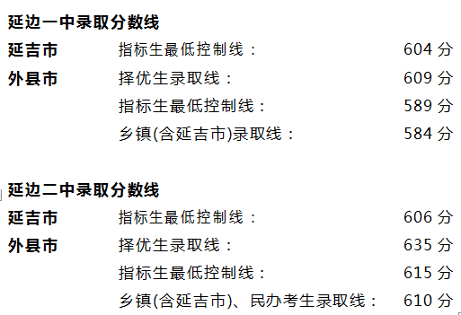今日,州教育局公布2020年延边一中、延边二中录取分数线。