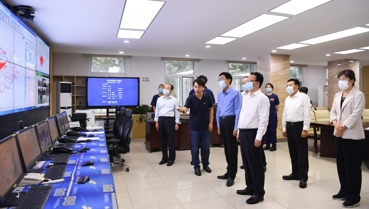8月24日,全省防御台风工作视频会议在长春召开。会前,省委书记巴音朝鲁,省委副书记、省长景俊海等省领导来到省应急管理厅指挥中心,通过卫星云图察看台风走向及对我省影响