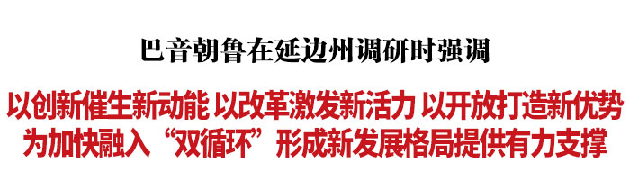 调研中,巴音朝鲁强调,各级党委、政府要深入贯彻习近平总书记视察吉林重要讲话重要指示精神,正确认识和把握国内外环境发生的深刻变化,扎实做好“六稳”工作,全面落实“六保”任务,加快融入新发展格局。要加强与国家重大区域发展战略对接合作,积极探索融入国内大循环的有效途径,着力提升在国内大循环中的地位作用。要紧紧围绕推动高质量发展,充分发挥吉林比较优势,深入实施创新驱动发展战略,培育更多新产业新业态新模式,加快新旧动能转换。要坚定不移推进改革开放,着力破除制约吉林发展的体制机制障碍,优化土地、劳动力、资本、技术、数据等要素配置,更好畅通产业循环、市场循环、经济社会循环。要全面提高对外开放水平,充分发挥长春新区、中韩(长春)国际合作示范区、珲春海洋经济发展示范区等平台作用,推动更深层次、更高水平改革开放。要常怀爱民之心,恪守为民之责,巩固脱贫攻坚成果,加大保障改善民生力度,加强和创新社会治理,不断增强人民群众的获得感幸福感安全感。