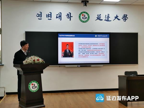 延边大学校长金雄以“学习领会习近平教育思想,在建设特色高水平大学中勇挑重担”为主题,就习近平新时代中国特色社会主义教育思想,建设“双一流”和“双特色”的SWOT分析,研究生的使命和担当等内容进行讲述。