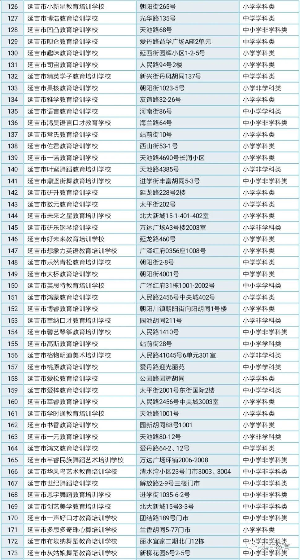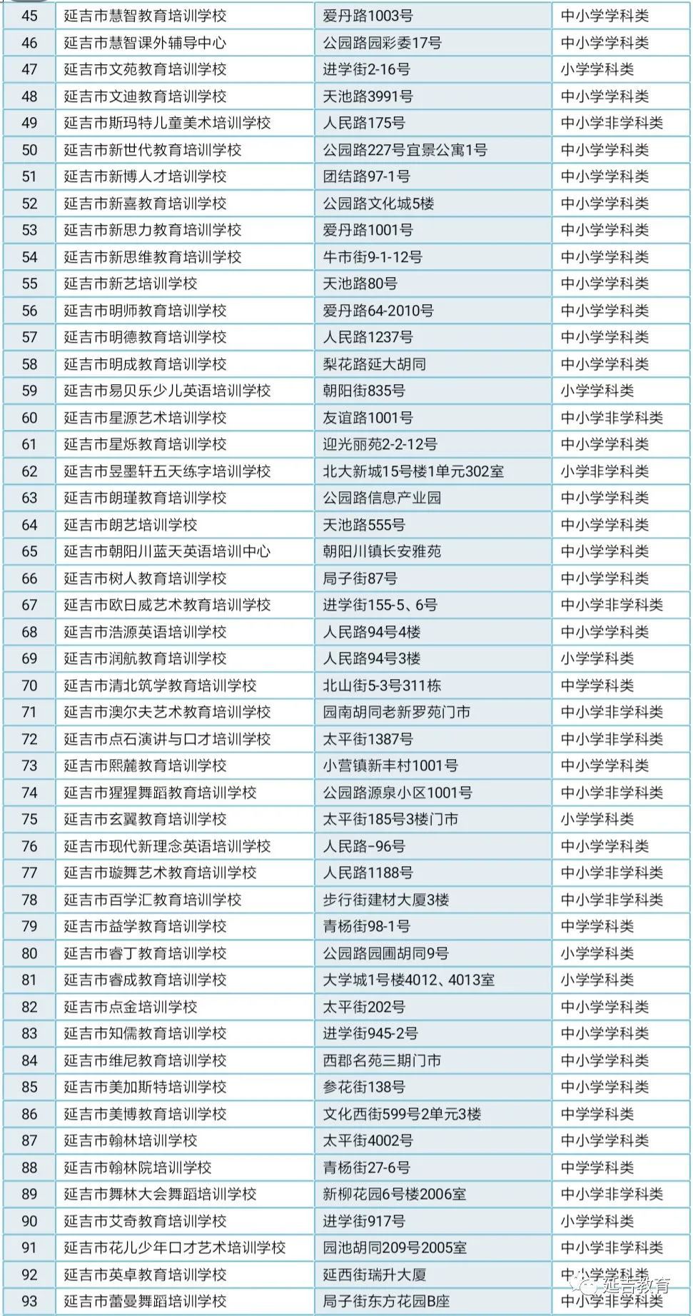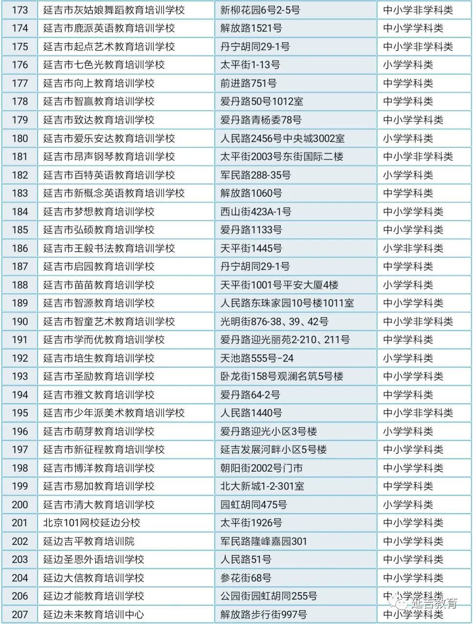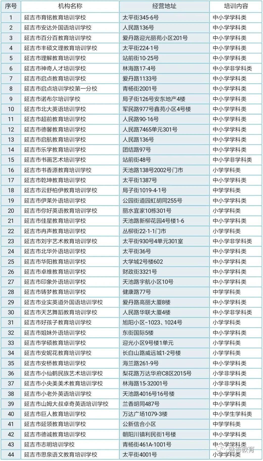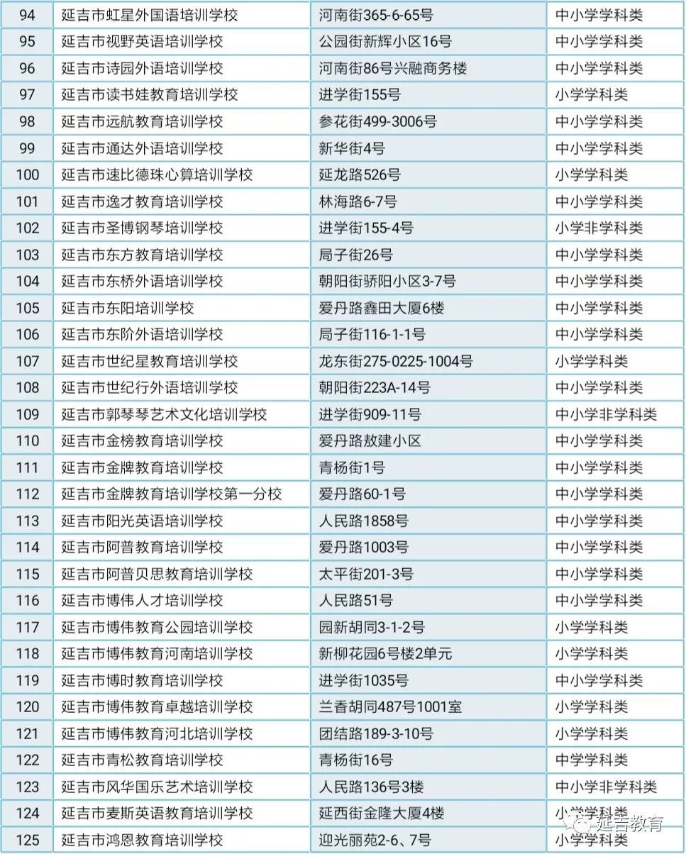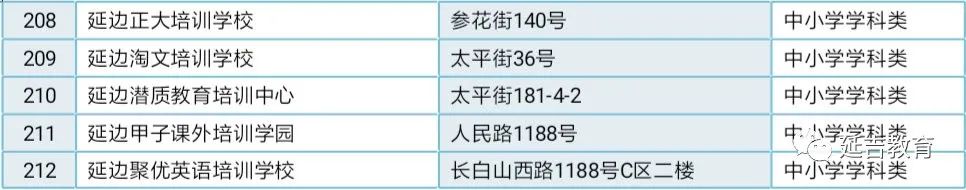 延吉市校外培训机构白名单