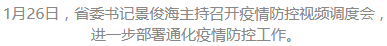 今天(1月26日),省委书记景俊海在全省“两会”期间主持召开疫情防控视频调度会,进一步部署通化疫情防控工作。他强调,要深入贯彻习近平总书记重要讲话重要指示精神,坚持“一精准三确保”,坚决打通物资供应堵点、难点、痛点,最大限度降低疫情对群众生活影响,确保疫情防控各项工作扎实有效。