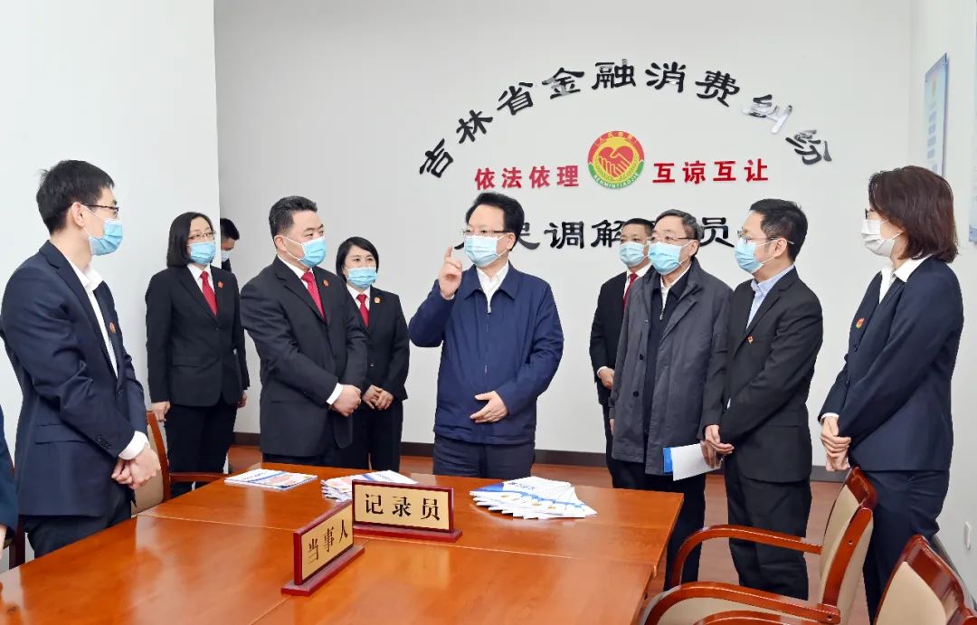 调研期间,景俊海主持召开座谈会。在肯定省法院工作后,他强调,推动法院工作高质量发展,对加快新时代吉林全面振兴全方位振兴意义重大。一要坚持党的领导,毫不动摇走中国特色社会主义法治道路,引导广大干警始终胸怀国之大者、强化理论武装,严守政治纪律和政治规矩,不断提高政治判断力、政治领悟力、政治执行力,切实把增强“四个意识”、坚定“四个自信”、做到“两个维护”落实到工作中、体现在行动上,始终在思想上政治上行动上同以习近平同志为核心的党中央保持高度一致,坚定不移忠诚核心、拥戴核心、维护核心、捍卫核心。二要坚持服务大局,找准服务和保障经济社会发展的切入点、结合点、落脚点,完善司法举措,加大服务力度,着力营造良好法治环境,全力促进经济社会高质量发展。三要坚持司法为民,妥善审理好就业、住房、教育、医疗、社保、养老以及食品药品安全、农民工追索劳动报酬等民生案件,坚决守住公平正义底线;加强基层人民法庭建设,完善重大风险联动防控化解机制,切实把矛盾解决在萌芽、化解在基层。四要坚持改革创新,加强司法制约监督体系改革和建设,深化民事诉讼程序繁简分流改革,纵深推进府院联动工作,加大智慧法院建设力度,加快审判体系和审判能力现代化。五要坚持从严治警,认真开展党史学习教育,坚决抓好法院队伍教育整顿,全面排查风险隐患,精准查找突出问题,彻底整治顽瘴痼疾,着力锻造忠诚干净担当的过硬法院队伍。省委将一如既往重视支持法院工作,全面加强对法院工作领导,关心爱护法院队伍,为吉林法院工作高质量发展创造良好条件。