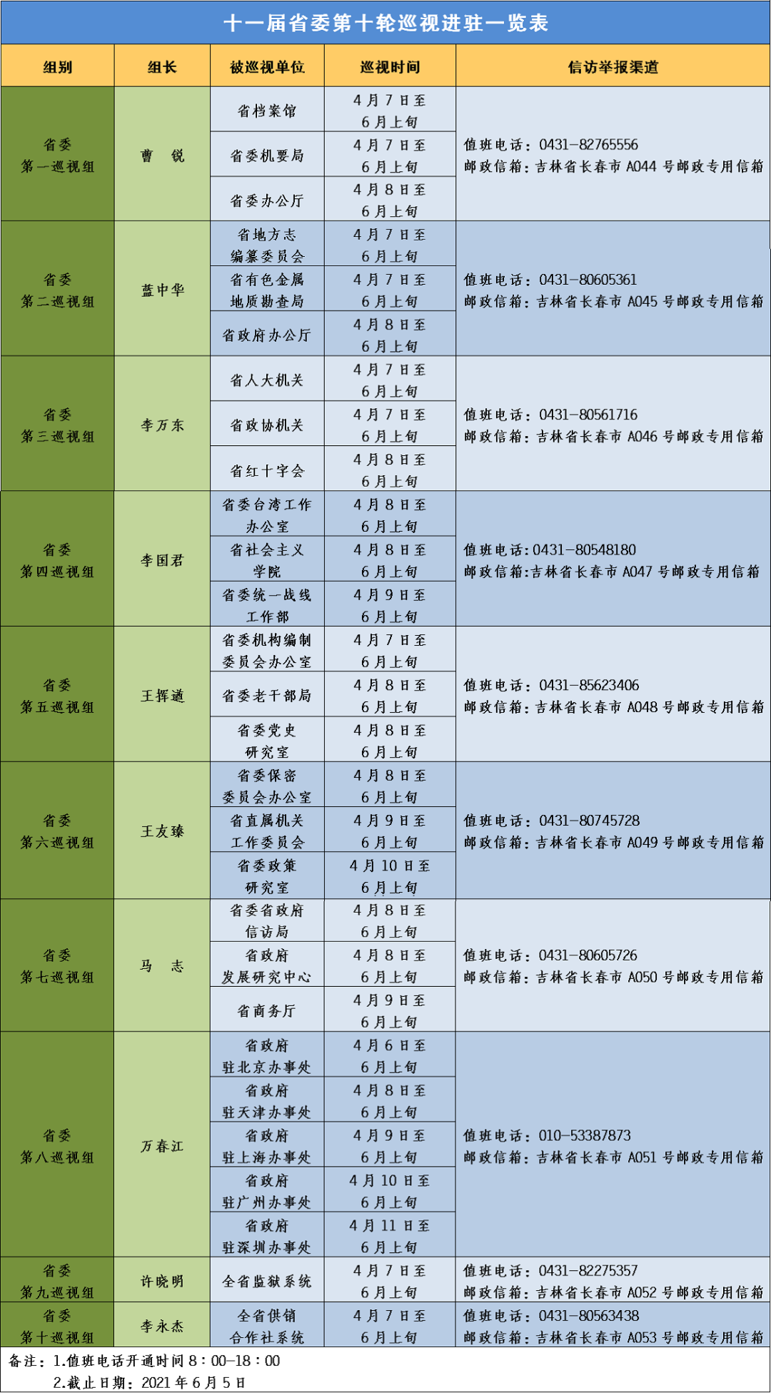 十一届省委第十轮巡视进驻一览表