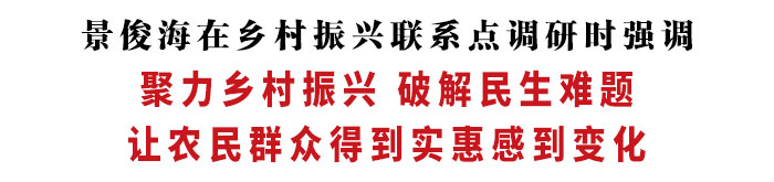 调研中,省市县乡村五级党委书记与复兴村党员群众代表、驻村干部座谈,仔细倾听群众操心事、烦心事、揪心事,帮助解决群众反映强烈的民生问题。景俊海强调,在取得脱贫攻坚战全面胜利后,加快推进乡村振兴,是以习近平同志为核心的党中央作出的重大决策部署。全省各级党委政府必须突出民生和发展两个关键环节,推进巩固拓展脱贫攻坚成果同乡村振兴有效衔接。一要强化更高水平民生保障,严格落实“四个不摘”要求,健全防止返贫动态监测和农村低收入人口常态化帮扶机制,充分发挥产业扶贫收入保险机制作用,坚决守住不发生规模性返贫的底线;着力提高农村公共服务水平,持续改善群众生产生活条件,确保发展成果惠及每户每人;尊重群众意愿,因地制宜研究制定惠农政策,坚持尽力而为、量力而行,努力把好事办好办实办下去。二要加快推动更高质量发展,持续培育壮大乡村产业,谋划布局一批重大项目,加快农业农村现代化,既做大做强村集体经济,又鼓励农民个人努力致富;大力发展县域经济,推动农村一二三产融合发展,创造更多就业岗位,促进农民就近就地就业,千方百计增加农民收入,建立完善职业农民职称评定机制,着力培养新型农民。三要全面加强党对乡村振兴工作的统一领导,把开展党史学习教育与为群众办实事结合起来,进一步落实“五级书记抓乡村振兴”机制,夯实包保责任,确保各项举措落地见效。
