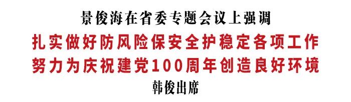 5月25日,省委书记景俊海主持召开省委专题会议,研究部署庆祝建党100周年安保维稳工作。会议传达中央有关会议精神,听取有关工作汇报。