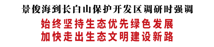 7月5日至6日,省委书记景俊海来到长白山保护开发区,宣讲习近平总书记“七一”重要讲话精神,就生态文明建设、生态旅游发展等工作进行调研。他强调,要深入贯彻习近平总书记视察吉林重要讲话重要指示精神,始终坚持生态优先、绿色发展,促进保护生态和发展生态旅游相得益彰,加快走出生态文明建设新路,为推动新时代吉林振兴发展作出新的更大贡献。