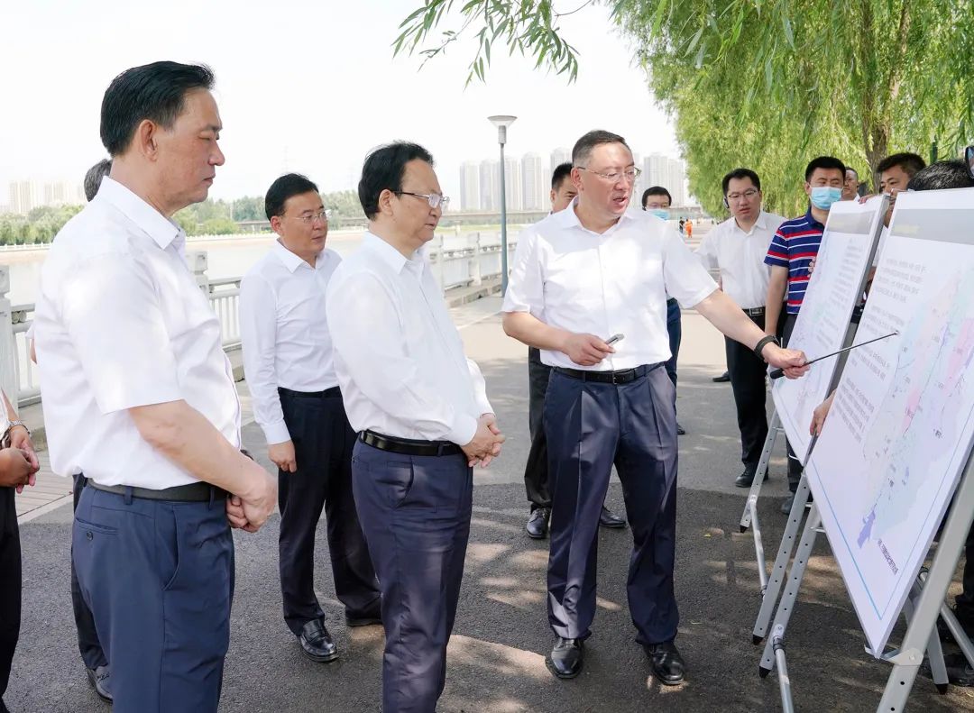 7月13日,省委书记景俊海到长春市就城市内涝治理工作进行调研,在东新开河实地查看水环境、水安全、水生态治理情况。