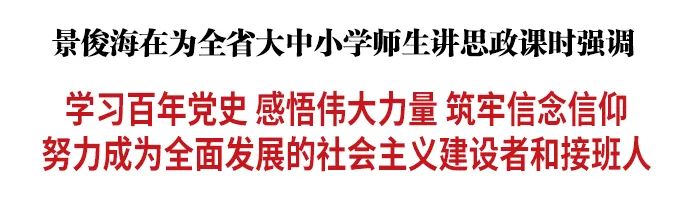 新学期刚刚开学,9月14日,省委书记景俊海到东北师范大学,观摩大中小学思政课教育,并以“学党史、悟思想、筑信仰”为主题,为全省大中小学师生讲思政课。他强调,要深入贯彻习近平总书记“七一”重要讲话精神,学习百年党史,感悟思想伟力,筑牢信念信仰,努力成为全面发展的社会主义建设者和接班人。