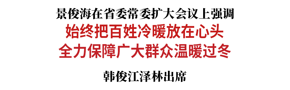 国庆假期后上班第一天,省委书记景俊海主持召开省委常委扩大会议。他强调,要深入贯彻习近平总书记视察吉林重要讲话重要指示精神,坚持以人民为中心的发展思想,始终把百姓冷暖放在心头,扎实做好保煤供电供热和当前各项重点工作,全力保障广大群众温暖过冬,确保实现全年发展任务目标。省委副书记、省长韩俊,省政协主席江泽林出席会议。