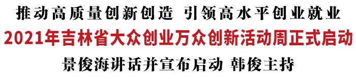 10月19日,在2021年全国大众创业万众创新活动周启动仪式结束后,2021年吉林省大众创业万众创新活动周正式启动。省委书记景俊海讲话并宣布启动。省委副书记、省长韩俊在吉林分会场参加全国活动周启动仪式,并主持我省活动周启动仪式。
