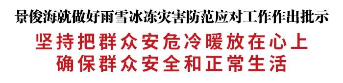 连日来,我省出现明显雨雪、寒潮及大风天气。继11月7日主持会议调度部署雨雪冰冻灾害防范应对工作后,11月9日,正在北京参加十九届六中全会的省委书记景俊海再次作出批示,要求省委省政府领导同志、各相关部门和各地党政主要负责同志,要深刻领会、坚决贯彻习近平总书记关于防灾减灾救灾工作的重要讲话重要指示精神,坚持把群众安危冷暖放在心上,扎实做好冰雪灾害监测和救灾装备物资队伍准备,做到闻警即动、快速反应,随时出击、及时救灾,确保群众安全和正常生活。各地各部门认真落实景俊海批示要求,超前部署、迅速行动,压实责任、强化措施,全力做好雨雪冰冻灾害防范应对工作。
