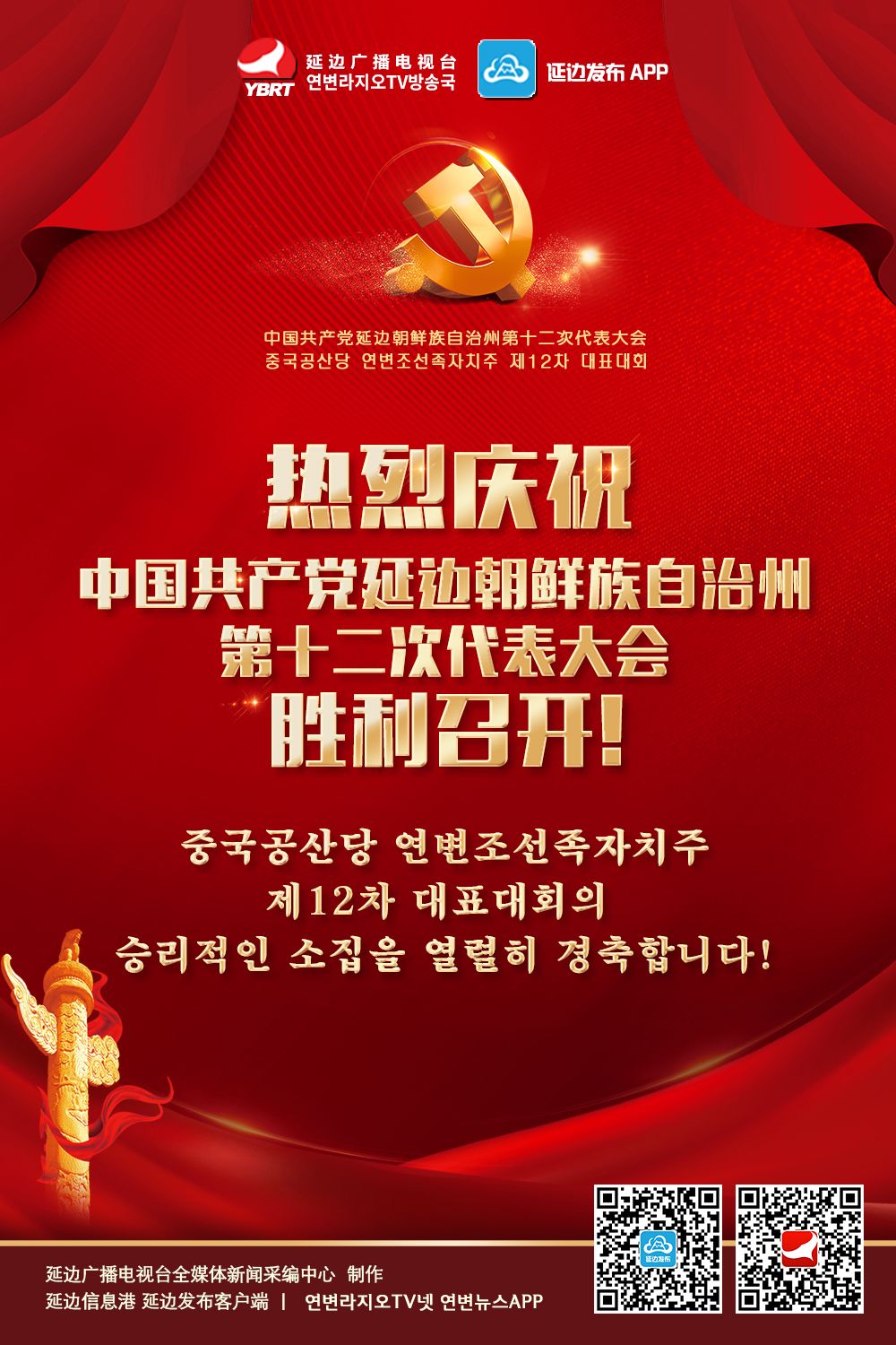 【延边广电海报】热烈庆祝中国共产党延边朝鲜族自治州第十二次代表大会胜利召开!