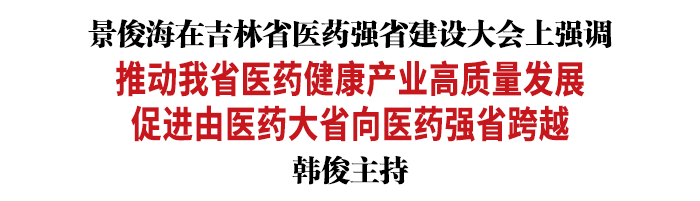 元旦后上班第一天,吉林省医药强省建设大会以视频形式召开。省委书记景俊海出席会议并强调,要深入贯彻习近平总书记关于健康中国建设的重要论述和视察吉林重要讲话重要指示精神,全面实施“一主六双”高质量发展战略,加快建设长辽梅通白延医药健康产业走廊,推动我省医药健康产业高质量发展,促进由医药大省向医药强省跨越。省委副书记、省长韩俊主持会议。