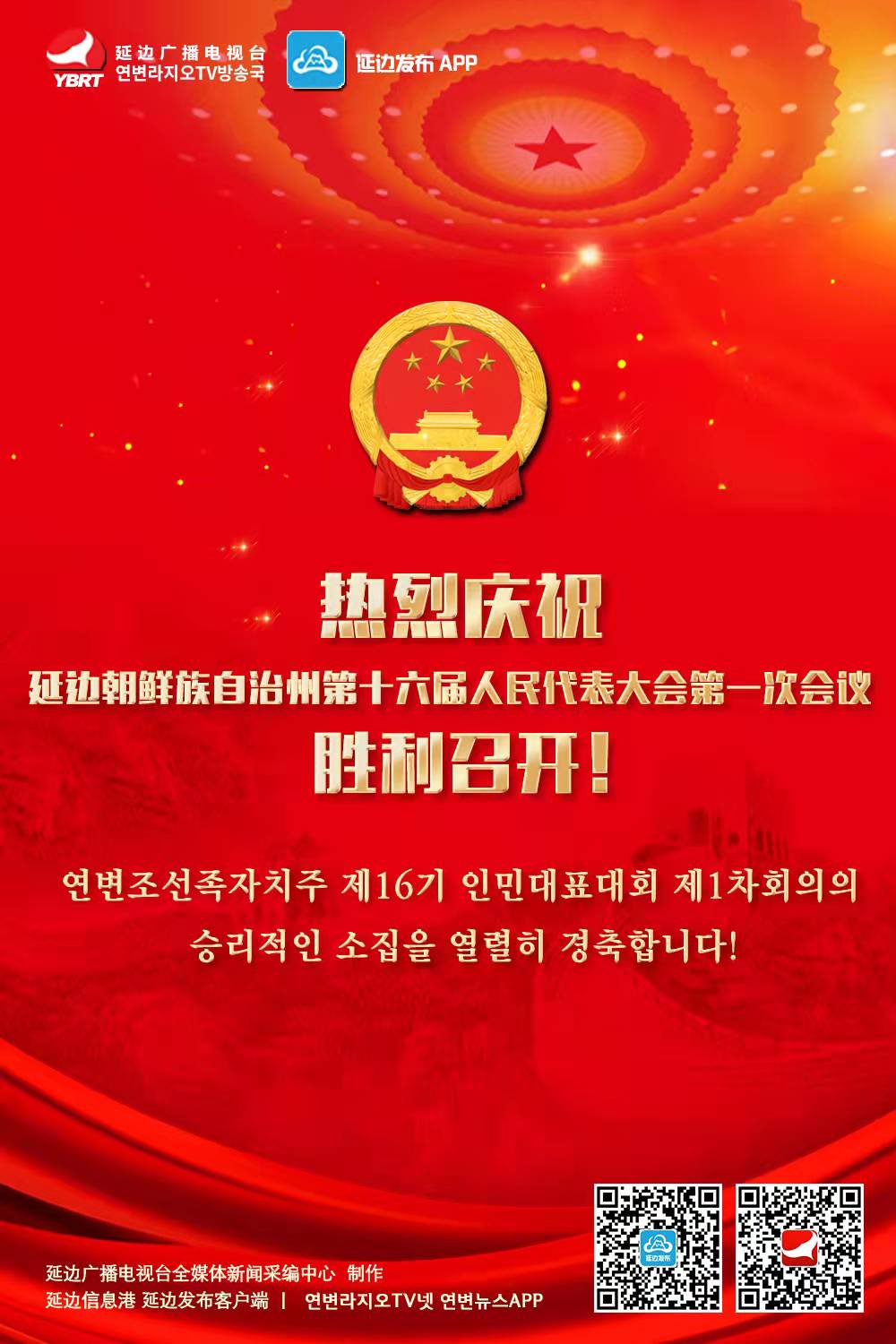 【延边广电海报】热烈庆祝延边朝鲜族自治州第十六届人民代表大会第一次会议胜利召开!