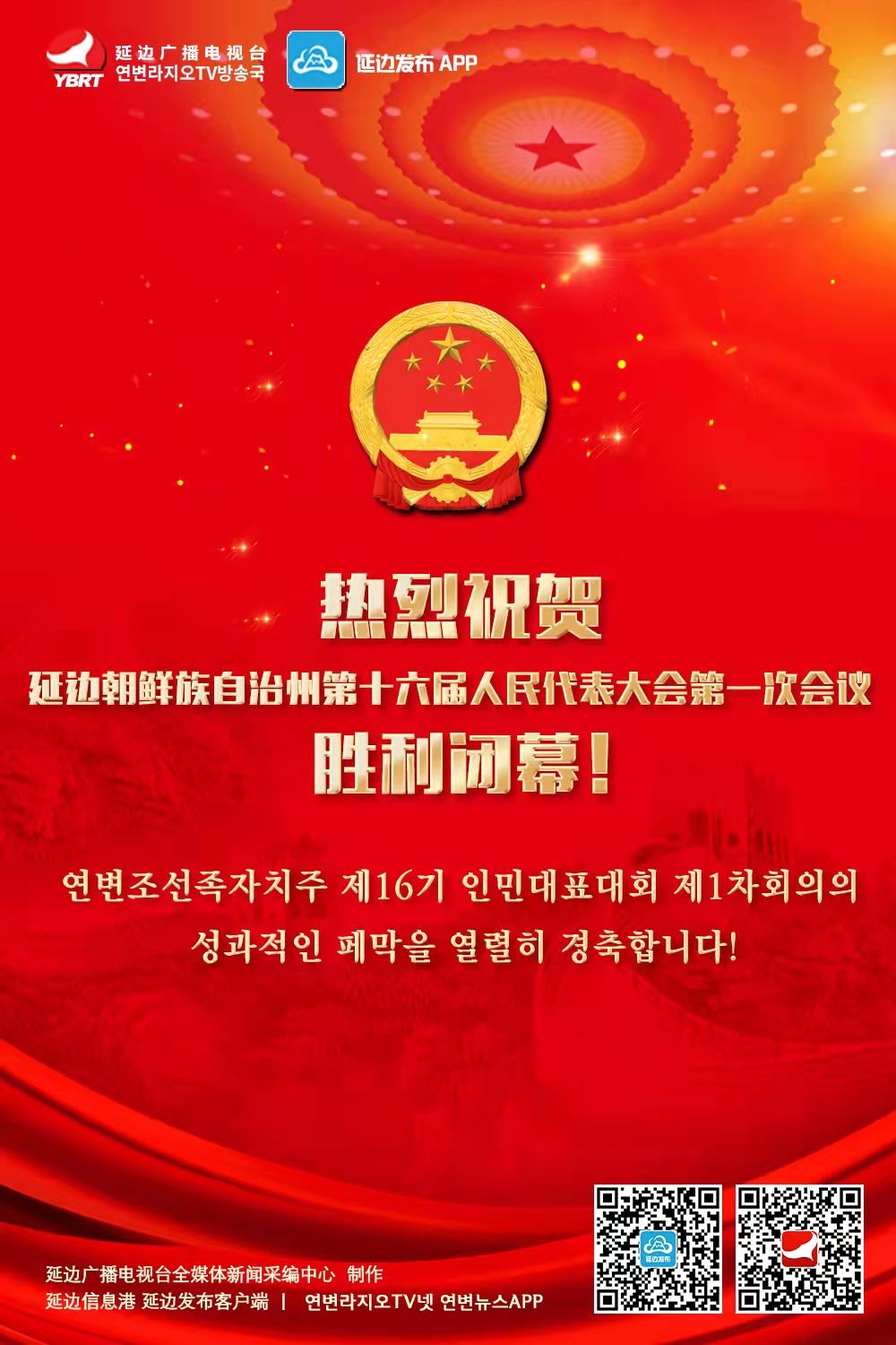 【延边广电海报】热烈祝贺延边朝鲜族自治州第十六届人民代表大会第一次会议胜利闭幕!