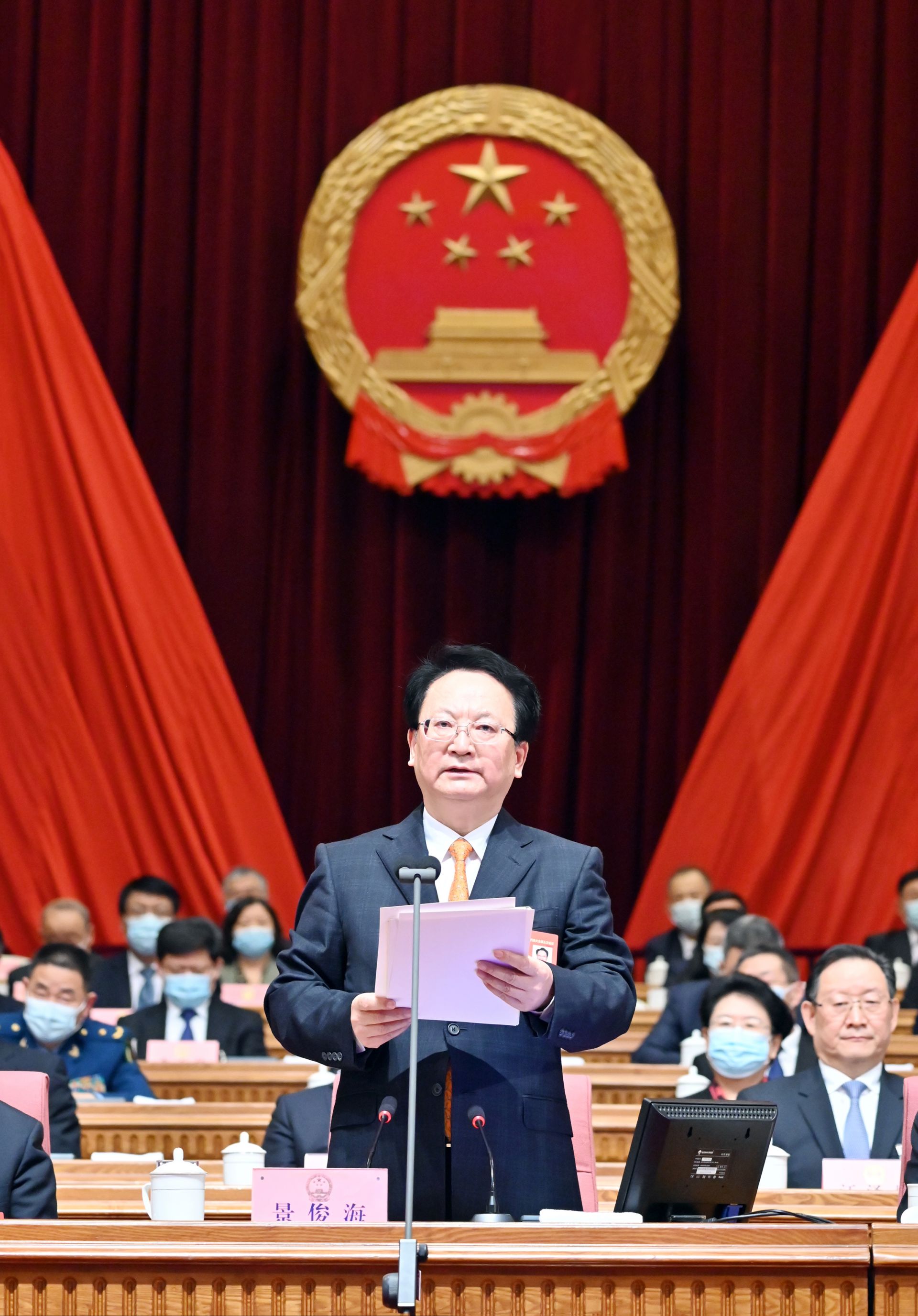 范锐平、吴靖平、胡家福、李悦、刘维、张忠、张志军、张恩惠、阿东在主席台就座。在主席台就座的还有:其他在长省级领导、省十三届人大代表中的省级老领导和主席团其他成员。
