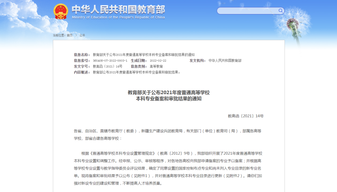 日前,教育部公布了2021年度普通高等学校本科专业备案和审批结果,其中新增专业点1961个、撤销专业点804个,31种新专业列入《普通高等学校本科专业目录》。本次备案、审批和调整的专业点,将列入相关高校2022年本科招生计划。