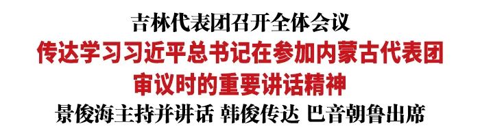 3月6日上午,吉林代表团召开全体会议,传达学习习近平总书记在参加内蒙古代表团审议时的重要讲话精神。代表团团长景俊海主持并讲话,副团长韩俊传达,巴音朝鲁出席。