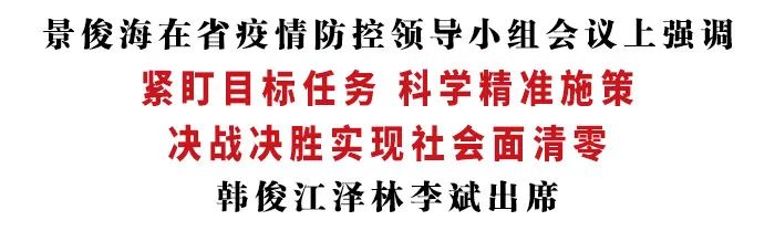 3月21日下午,省委书记景俊海以视频形式主持召开省疫情防控领导小组会议。他强调,要深入贯彻习近平总书记关于疫情防控的重要讲话重要指示精神,按照孙春兰副总理部署要求,紧盯目标任务,科学精准施策,决战决胜实现社会面清零。省委副书记、省长韩俊,省政协主席江泽林,国务院联防联控机制综合组吉林工作组组长、国家卫生健康委副主任李斌出席会议。