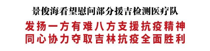 4月11日下午,省委书记景俊海专程前往部分援吉检测医疗队驻地走访慰问,代表省委、省政府向他们致以诚挚感谢和崇高敬意。