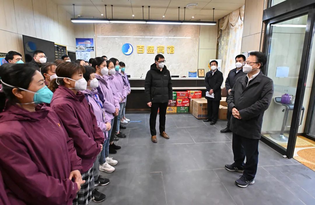 看望慰问结束后,景俊海随机抽查长春市经开区一老旧小区,向物业工作人员详细询问封闭管控、民生保供等情况。景俊海要求长春市、经开区进一步做好封闭小区基本生活物资保障工作,有效打通线上订购和线下配送通道,积极协调包保支援地区加大供货力度,确保居民及时得到米面粮油、蔬菜水果等生活必需品,特别要关注独居老人、空巢老人、孤寡老人和生活困难群众等特殊群体,配备专人联络,配送服务上门,决不允许有任何漏项盲点。景俊海向楼上居民群众挥手问好,关切询问供应情况,群众对当前保供工作表示满意。景俊海希望大家坚定必胜信心,安心居家防疫,支持配合党委政府工作,齐心合力战胜疫情。