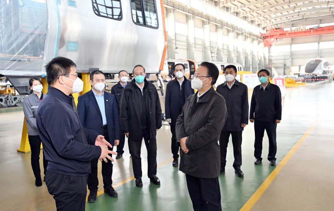 4月14日,省委书记景俊海到长春市实地检查指导疫情防控、复工复产等工作,在中车长客公司现场研究解决原物料运输进厂等实际问题。