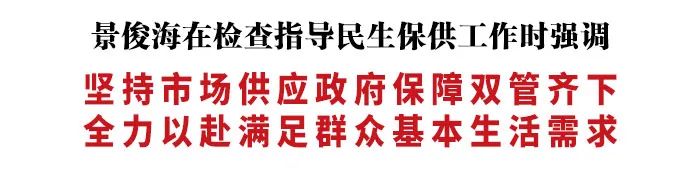 检查中,景俊海强调,扎实做好民生保供工作,事关千家万户,事关抗疫全局。要严格落实保供人员集中住宿、闭环管理、高频检测等防疫措施,对运送车辆进行全面消杀,确保供应链条绝对安全。要优先推动一批农贸市场、大型商超等生活物资保障企业恢复经营,有序恢复一批电商平台,科学规划建设一批具备综合功能的大仓基地,全力优化采购、储备、发放、管理环节,完善线上订货下单、线下统一配送模式,确保基本生活物资市场供应体系有效运转。要继续发挥联保联供机制作用,加强政府调配和市场供应,帮助大型商贸流通企业跨省、跨地区组织货源,严格落实绿色通道政策,确保省内外运送车辆通行顺畅,全力保障米面、肉蛋、蔬菜、水果、水产品等各类基本生活物资有效供给。各地要继续向长春运送保供蔬菜包,适当配比地产特色产品、米面油奶、挂面等,进一步提升分拣、打包、配送等全流程效率,直接送到各小区,确保组织到位、快速送达。长春市各社区要对独居老人、空巢老人、孤寡老人以及生活困难群众等特殊群体点对点包保配送,坚决消除保供盲区死角。要坚持五级书记抓民生保供,确保各项工作措施上下贯通、一抓到底、落到实处,有力有效打通服务群众“最后一米”。