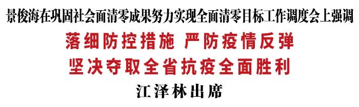 4月20日,省委书记景俊海以视频形式主持召开巩固社会面清零成果、努力实现全面清零目标工作调度会。他强调,要深入贯彻习近平总书记关于统筹疫情防控和经济社会发展的重要讲话重要指示精神,按照孙春兰副总理部署要求,坚持科学精准、动态清零不犹豫不动摇,落细防控措施,严防疫情反弹,坚决夺取全省抗疫全面胜利。省政协主席江泽林出席会议。