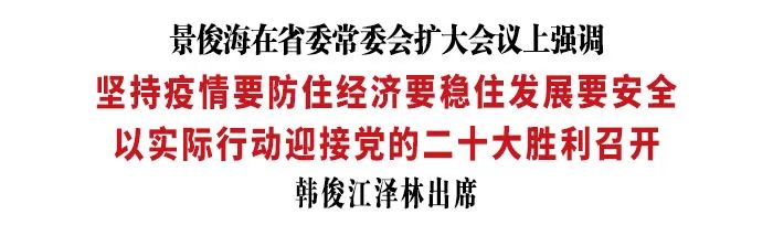 4月30日,省委书记景俊海以视频形式主持召开省委常委会扩大会议,传达学习中共中央政治局4月29日会议主要精神,研究部署我省贯彻落实举措。景俊海强调,全省上下要切实把思想和行动统一到以习近平同志为核心的党中央对经济形势的判断和决策部署上来,坚定信心、攻坚克难,坚持疫情要防住、经济要稳住、发展要安全,以实际行动迎接党的二十大胜利召开。省委副书记、省长韩俊,省政协主席江泽林出席会议。