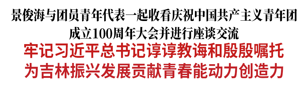景俊海强调,站在党的青年运动新的历史起点上,当代吉林青年正迎来成长成才、建功立业的难得人生际遇。希望全省广大团员青年始终牢记习近平总书记谆谆教诲和殷殷嘱托,认真接受政治训练、加强政治锻造、追求政治进步,以成长为一名合格的共产党员为目标、为光荣,争做“五个模范”,为吉林振兴发展贡献青春能动力、创造力。一要坚定信仰、至诚报国,忠诚践行习近平新时代中国特色社会主义思想,深刻领会“两个确立”的决定性意义,增强“四个意识”、坚定“四个自信”、做到“两个维护”,始终做听党话、跟党走的排头兵。二要围绕中心、服务大局,积极响应“创业有你、‘就’在吉林”“奋斗有我、‘就’在吉林”的号召,踊跃投身吉林振兴发展实践,始终做建新功、立伟业的生力军。三要珍惜韶华、不负青春,勇于到艰苦环境和基层一线去担苦、担难、担重、担险,在实干中成就事业,始终做本领高、能力强的奋斗者。四要修身立德、朝气蓬勃,不断锤炼意志力、坚忍力、自制力,一心为公、一身正气、一尘不染,始终做立大志、明大德的践行者。