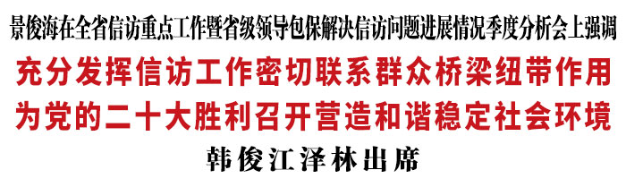 景俊海指出,今年以来,全省上下深入贯彻习近平总书记关于加强和改进人民信访工作的重要思想,认真落实“五级书记抓信访”责任体系、党政领导包保地方信访工作机制,督促落实重点信访工作,研究解决信访突出问题。各位省级领导以身作则、主动作为,坚持综合施策,敢于动真碰硬,帮助包保地区解决了一批重点信访问题,充分发挥了示范带动作用。全省信访系统和各有关部门立足职能定位,着力破解信访难题,为保障群众合法权益、维护社会大局稳定作出了积极贡献。