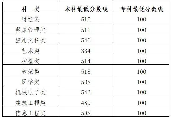 (2)2022年吉林省普通高校对口招生统一考试各科类、批次录取最低控制分数线见下表: