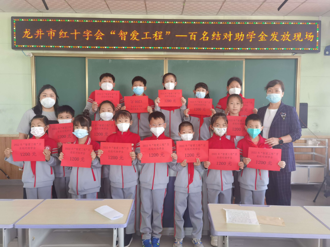 日前,龙井市举行2022年“智爱工程”结对助学金发放仪式,向全市19所学校的100名贫困学生发放助学金,共24万元。