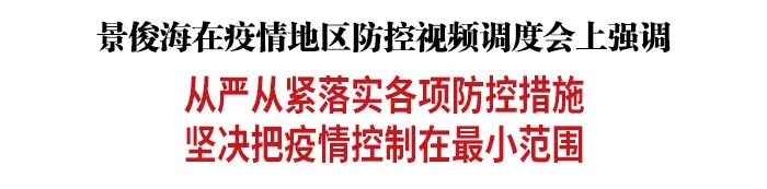 景俊海强调,各级党委、政府要充分认清疫情防控的复杂性、艰巨性、反复性,毫不动摇坚持“外防输入、内防反弹”总策略和“动态清零”总方针,进一步压紧压实“四方”责任,严格落实“四早”和“四应四尽”措施,坚决筑牢疫情防控屏障。一要着力抓好流调溯源,快筛查、快追阳,精准找出所有阳性感染者和密接、次密接人员,尽快锁定传染源、切断传播链。二要着力抓好全员核酸检测,尽快开辟快采快检、快出结果、快通知“绿色通道”,持续提高疫情监测预警灵敏性和便利性;核酸采样人员以及负责组织动员、测温验码等服务保障人员,要规范做好个人防护,划定活动区域,进一步降低疫情传播风险。三要着力抓好常态化防控,做好高考、中考期间疫情防控工作,准备充足的备用考点和隔离考场,强化考前体温监测、核酸检测等健康筛查措施,加强考场清洁消杀,确保考试顺利有序进行;严格医院、集中隔离点、建筑工地、养老福利机构、监所、车站、机场等重点场所防控,定期开展环境消杀和核酸检测,避免交叉感染;落细落实农村防控措施,加强返乡人员和乡镇、街道重点场所防控管理;引导群众自觉遵守防疫要求,扎实推进疫苗接种工作,进一步夯实社区防线。四要着力抓好人防物防技防,严格落实人、物、环境同防要求,坚决守住外防输入关口。五要着力抓好防控能力建设,涉疫县(市、区)要尽快设立红、黄、绿码医院,切实提升核酸检测能力,继续抓好防疫和生活物资采购储备,加强医疗救治、应急处突、治安管理等人员组织和培训,确保有备无患、万无一失。六要着力抓好中医药全程干预,对轻型、普通型患者要加大中医药综合施治力度,对高风险群体进行中药提前干预,有效降低感染率。