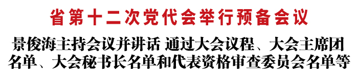 景俊海在讲话中指出,召开省第十二次党代会是全省人民政治生活中的一件大事。开好这次党代会,对于深入贯彻习近平新时代中国特色社会主义思想、全面落实党的十九大和十九届历次全会精神、动员和激励全省上下奋力谱写全面建设社会主义现代化新吉林精彩篇章,具有十分重大而深远的意义。各位代表肩负承载着全省党员的信任和重托,代表反映着党员干部和全省人民的意愿和心声,责任重大、使命光荣。要进一步提高政治站位,深刻领会“两个确立”的决定性意义,增强“四个意识”、坚定“四个自信”、做到“两个维护”,切实把思想和行动统一到以习近平同志为核心的党中央决策部署上来,以饱满的政治热情和良好的精神状态,真正把这次大会开成一次高举旗帜、维护核心的大会,民主集中、体现意志的大会,凝聚共识、鼓舞人心的大会,风清气正、务实高效的大会,进一步动员全省广大干部群众切实肩负起习近平总书记赋予吉林的“新担当、新突破、新作为”重大职责使命,走好新的赶考路,加快推动新时代吉林全面振兴全方位振兴。要本着对党的事业高度负责的精神,认真履职尽责,积极建言献策,更好地反映各方面好经验好做法,汇聚好意见好建议,集思广益、理清思路,统一思想、凝聚力量,让党代会报告更好地体现党中央决策部署,体现新时代吉林振兴发展要求,体现全省广大干部群众共识,引领吉林未来五年发展。要扎实做好大会选举工作,把行使民主权利同准确把握组织要求、政策要求结合起来,同严格履行选举程序结合起来,确保圆满完成选举任务。要严肃换届纪律,压紧压实责任,坚决做到政治坚定、对党忠诚,不踩“红线”、不越“雷区”。要严格遵守大会各项会风会纪要求,严格落实中央八项规定及其实施细则精神和我省实施办法,积极营造良好会风,努力开好这次大会。