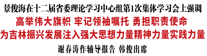 景俊海强调,全省各级党组织和广大党员干部要把深学细悟笃行习近平新时代中国特色社会主义思想作为首要政治任务和长期战略任务,在锤炼党性修养、厚植人民情怀上下功夫,切实履行好“新担当、新突破、新作为”重大职责使命。一要保持常学常新、常悟常进的学习心,深刻领会“两个确立”的决定性意义,增强“四个意识”、坚定“四个自信”、做到“两个维护”,切实学出坚定信仰、绝对忠诚、为民情怀、坚强党性。二要走好全面振兴、全方位振兴的发展路,处理好总量和质量、传统和创新、政府和市场、发展和安全的关系,全面实施“一主六双”高质量发展战略,加快发展“六新产业”、建设“四新设施”,持续深化“五个合作”,坚定不移把吉林各项事业推向前进。三要讲好武装全省、教育人民的真道理,持续抓好学习宣传贯彻各项工作,扎实推进党员干部教育培训“铸魂赋能”工程,推动习近平新时代中国特色社会主义思想融入血脉、植入灵魂。四要绘好“五化”推进、闭环落实的施工图,进一步解放思想、深化改革、转变作风、狠抓落实,大力培树“严新细实”优良新风,按照既定“任务书”“时间表”“路线图”把工作推向纵深,努力创造经得起历史、实践和人民检验的实绩。
