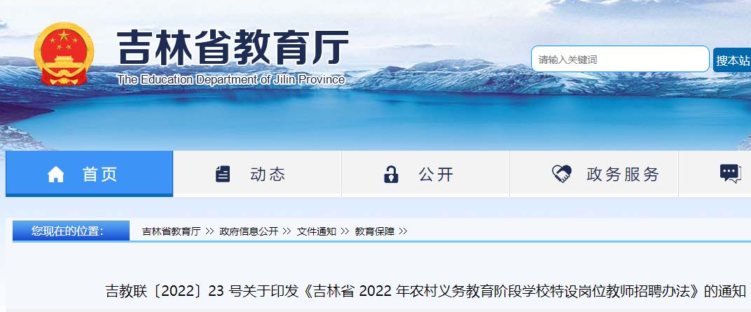 吉教联〔2022〕23号 关于印发《吉林省 2022 年农村义务教育阶段学校特设岗位教师招聘办法》的通知