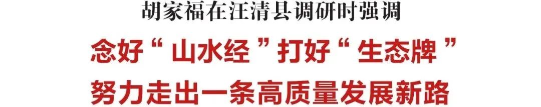 调研中,胡家福主持召开座谈会,在听取汪清县工作汇报后指出,汪清自然资源丰富、生态环境优异、产业特色鲜明,要立足现实基础,找准主攻方向,加快绿色转型,推动县域经济实现更大突破。要充分发挥定点帮扶优势,把项目建设作为重中之重,抓紧推进基础设施、清洁能源等重大项目前期工作,力争早日出形象、见效益;要把招商引资作为当务之急,围绕农特产业、文化旅游、食品加工、清洁能源、医药健康等重点领域开展精准招商,为汪清高质量发展提供新支撑;要把优化营商环境作为一号工程,推进政务服务再优化、简政放权再深化、精准监管再细化,让各类市场主体发展活力更足更强。要充分发挥农业资源优势,培育壮大黑木耳、人参、大米、延边黄牛等特色产业,大力发展农村电商、乡村旅游、健康养生等新业态,突出抓好农村公路、饮水安全、危房改造、农田水利等基础设施建设,努力实现农业产业兴旺和农民生活富足。要充分发挥生态环境优势,稳步推进东北虎豹国家公园建设,大力实施天然林、生物多样性、草原湿地等重大生态保护修复工程,坚决打好污染防治攻坚战和蓝天、碧水、净土保卫战,加快推动生态资源与避暑休闲、红色文化、森林康养等深度融合,使绿色成为汪清转型发展最鲜亮的底色。