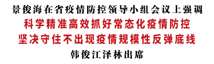 景俊海指出,当前,我省实现了确诊病例、无症状感染者、住院患者“三清零”,但外防输入、内防反弹压力依然不小,远没有到可以松口气、歇歇脚的时候。全省上下必须坚决克服麻痹思想、厌战情绪、松劲心态,毫不动摇坚持“外防输入、内防反弹”总策略和“动态清零”总方针,扎实做好常态化科学精准防控和局部应急处置,切实织密织牢疫情防控网络。一要进一步压紧压实责任,保持疫情防控指挥体系常态化运转,持续加强防控工作监管,科学统筹配置一线防控力量,全面夯实疫情防控基层基础。二要进一步落实防控措施,坚持人防、物防、技防相结合,严格进口冷链食品境内生产、流通、销售全程防护和追溯管理,加强对入境航空器及其废弃物的消毒监督管理,强化高风险岗位人员闭环管理,严格落实重点场所、关键部位防控措施,坚决筑牢外防输入、内防反弹坚固防线。三要进一步强化应急响应,加强疫情监测预警,充分发挥医疗机构、发热门诊、药店等哨点作用,一旦发现局部、零星疫情,各级防疫“扑火队”要迅速行动,以快制快、以变应变,坚决把疫情控制在最小范围。四要进一步抓好精准防疫,严格执行疫情防控“九不准”要求,严禁层层加码,严防漏管失管,对落实不到位、造成严重后果的要依法依规严肃追究有关地方、单位和人员责任。五要进一步稳定经济增长,统筹抓好促就业、惠民生、保稳定、守底线各项工作,想方设法帮助人民群众解决实际困难,努力实现“止跌、回升、增长”目标,坚决做到“疫情要防住、经济要稳住、发展要安全”。