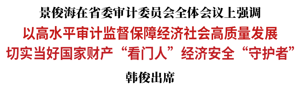 7月20日,省委书记、省委审计委员会主任景俊海主持召开省委审计委员会全体会议。他强调,要深入贯彻习近平总书记关于审计工作重要论述和视察吉林重要讲话重要指示精神,以高水平审计监督保障经济社会高质量发展,切实当好国家财产“看门人”、经济安全“守护者”。省长、省委审计委员会副主任韩俊出席会议。