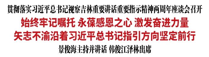 景俊海指出,两年来,吉林省深入贯彻习近平总书记重要讲话重要指示精神,以“五化”闭环工作法抓落实,取得了丰硕成果。这些成绩来之不易,根本在于以习近平同志为核心的党中央坚强领导,根本在于习近平新时代中国特色社会主义思想的科学指引,根本在于习近平总书记重要讲话重要指示精神在吉林的落地转化。