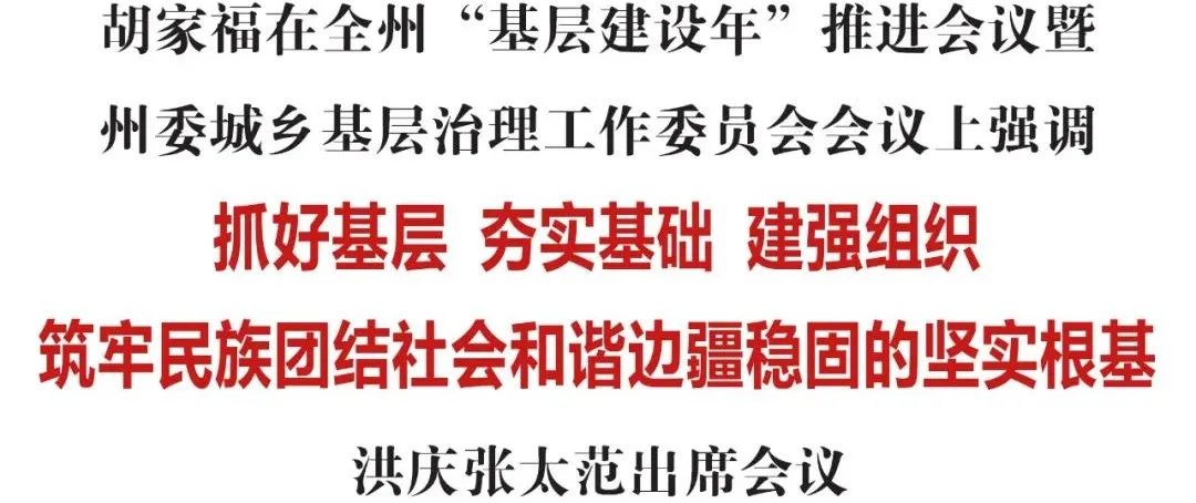 胡家福强调,开展好“基层建设年”活动,要围绕补齐工作短板夯实基层基础,加快新时代吉林党支部标准体系(BTX)建设,规范建设城市党建联盟,深入开展“五星级”乡村党组织创建工作,加强快递物流、外卖派送等新兴领域党建工作,切实发挥党建引领经济社会发展作用。要围绕健全体制机制完善治理体系,充分发挥州、县(市)两级党委城乡基层治理工作委员会作用,完善“四个平台”职责功能和运行机制,扎实推进党建引领乡村基层治理标准体系建设,构建自上而下基层治理体系。要围绕破解难点问题提升治理能力,通过出台政策措施、健全工作机制、创新工作载体,落实街道乡镇行政执法权,引导执法司法、应急管理、志愿者团队等力量下沉网格,确保基层治理有人抓、有人管。要围绕群众急难愁盼抓实为民服务,扎实推进“我为群众办实事”常态化长效化,加快便民设施建设和改造,切实增强群众获得感、幸福感、安全感。要围绕常态化疫情防控构建长效机制,牢牢把握“精准”、“快速”两个关键,做到主动防、早发现、快处置,坚决守住不出现疫情规模性反弹底线。