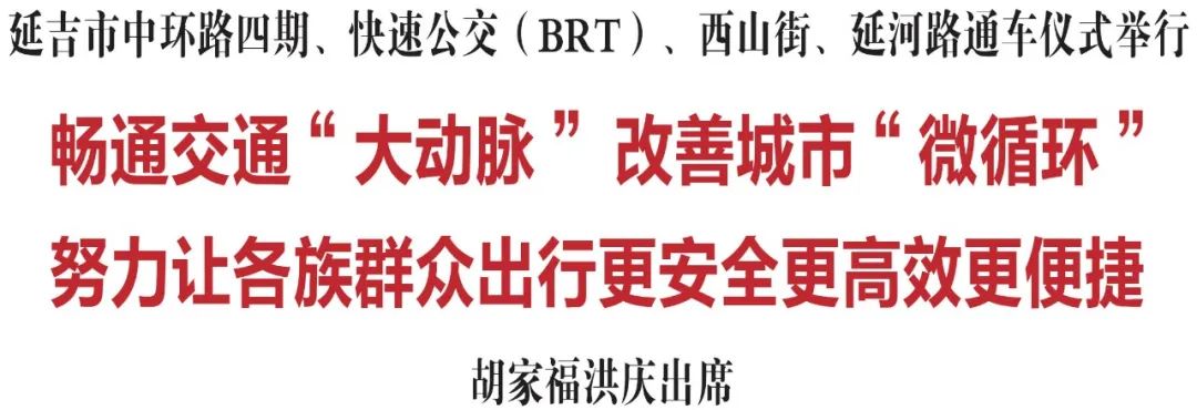 在建州70周年大庆即将到来之际,8月28日,延吉市中环路四期、快速公交(BRT)、西山街、延河路通车仪式举行。省委常委、州委书记胡家福,州委副书记、州长洪庆出席通车仪式。